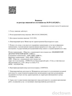 Медицинский Диагностический Центр Элиса осуществляет консультативный и диагностический прием взрослых. Прием проводится по предварительной записи.